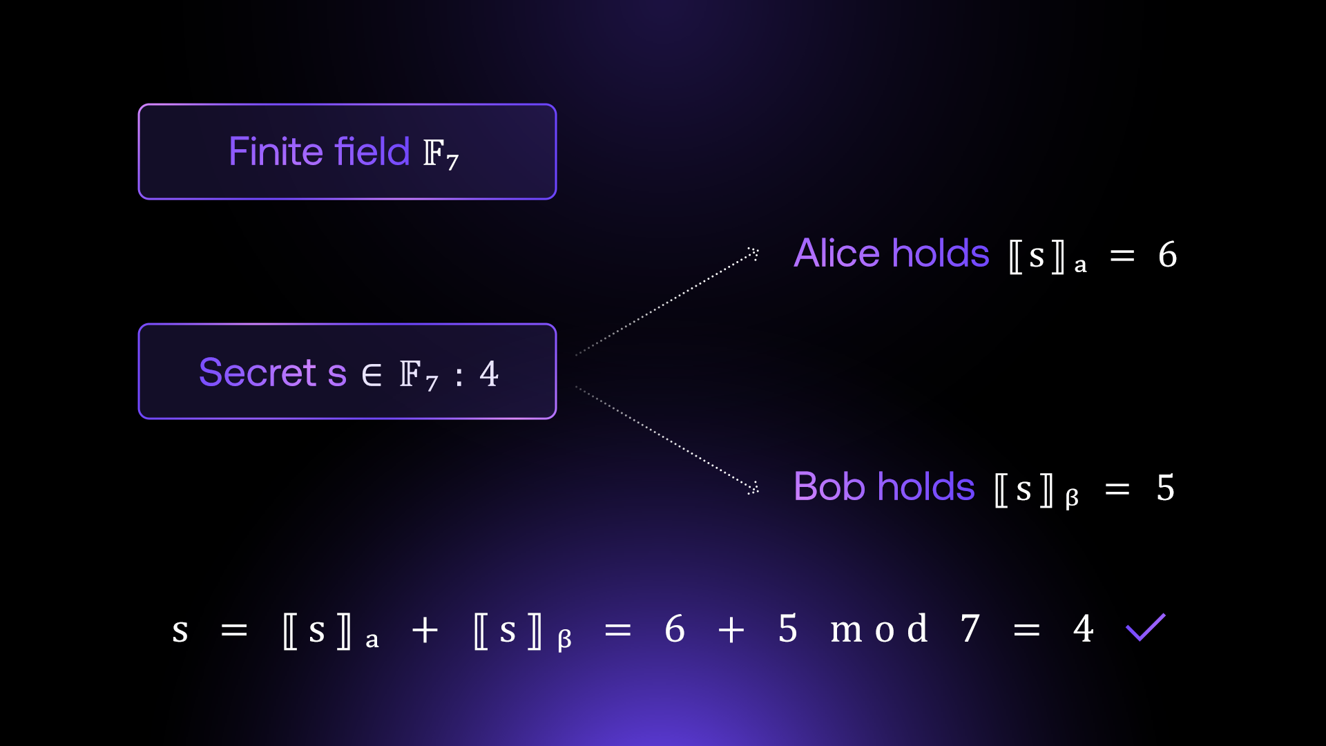 Shared computation implies shared information. But the condition that this data stay private poses a problem. How can we expect parties to compute on data that they have no knowledge over? The answer: secret sharing!